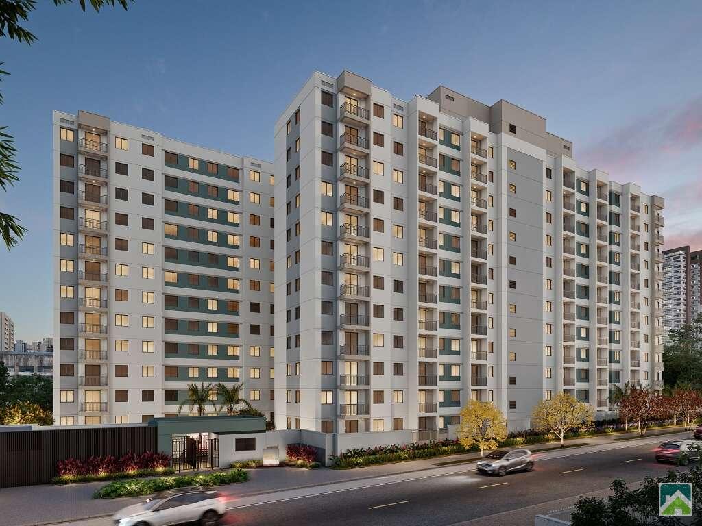 Unidade HIS2, com excelente aproveitamento de espaço e acabamentos modernos — piso laminado nos dormitórios, arejadores nas torneiras e descarga de duplo acionamento para economia e sustentabilidade.