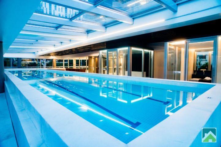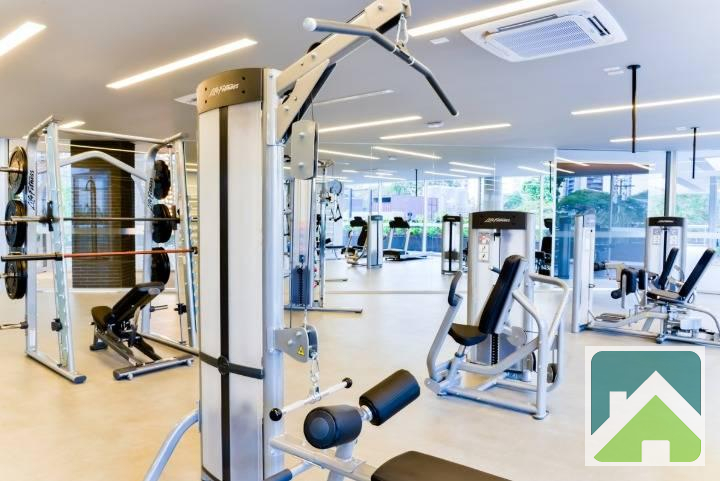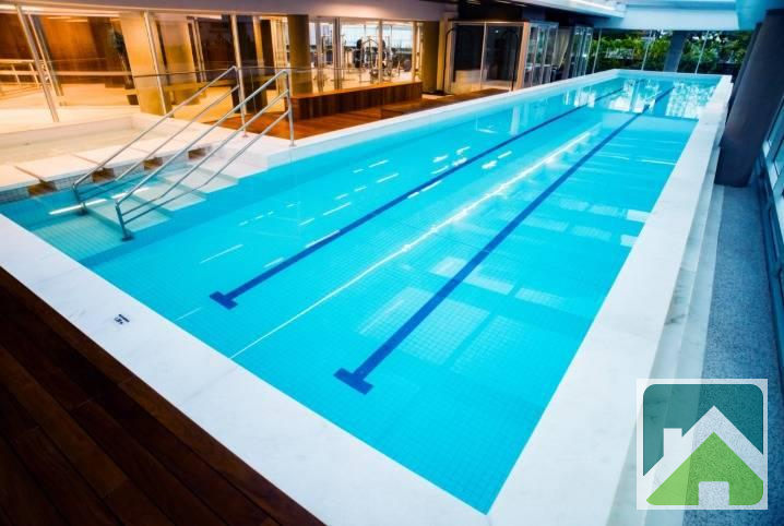 Piscina com raia de 25 metros, Sala de massagem, Fitness, Salão de festas, Brinquedoteca e Playground.