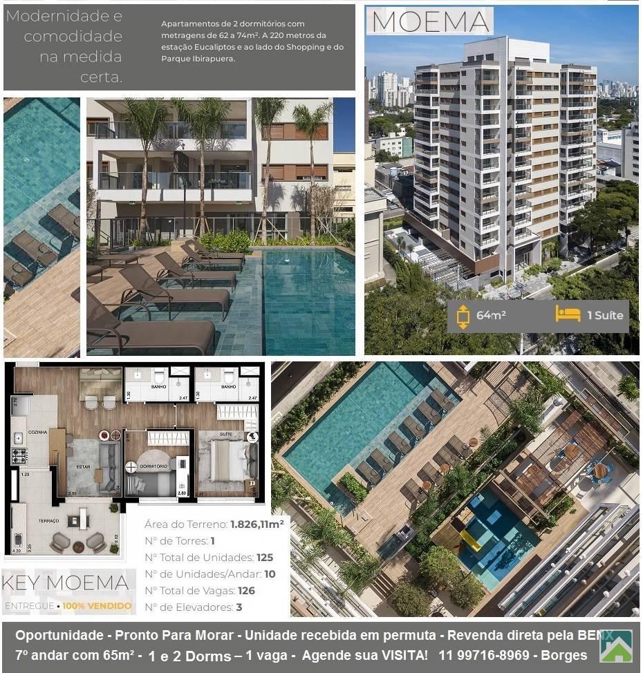 Apartamento pronto para morar, novo em moema, de 1 e 2 dormitórios, suite, terraço e vaga. Metragens de 65m², Metro Eucaliptos. Ótimo lazer. Ao lado do Shopping Ibirapuera. Estação do Metro Eucaliptos, a 200 metros. Bairro Moema, zona sul, São Paulo. Key Moema