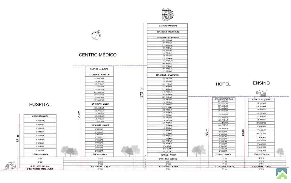 Elevadores: 2 de serviço e emergência (pressurizado)