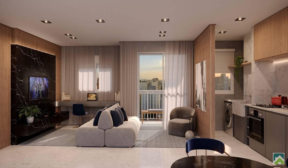 Apartamento com 3 dormitórios, sendo uma suite, sala para 2 ambentes com terraço, banheiro social, cozinha tipo americana e area de serviço com ventilação e iluminação natural. 1 Vaga de Garagem.