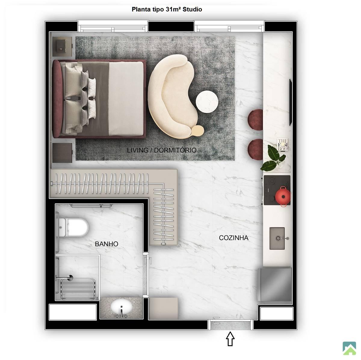 18 Unidades tipo Studio, entre 27 m² e 31 m²