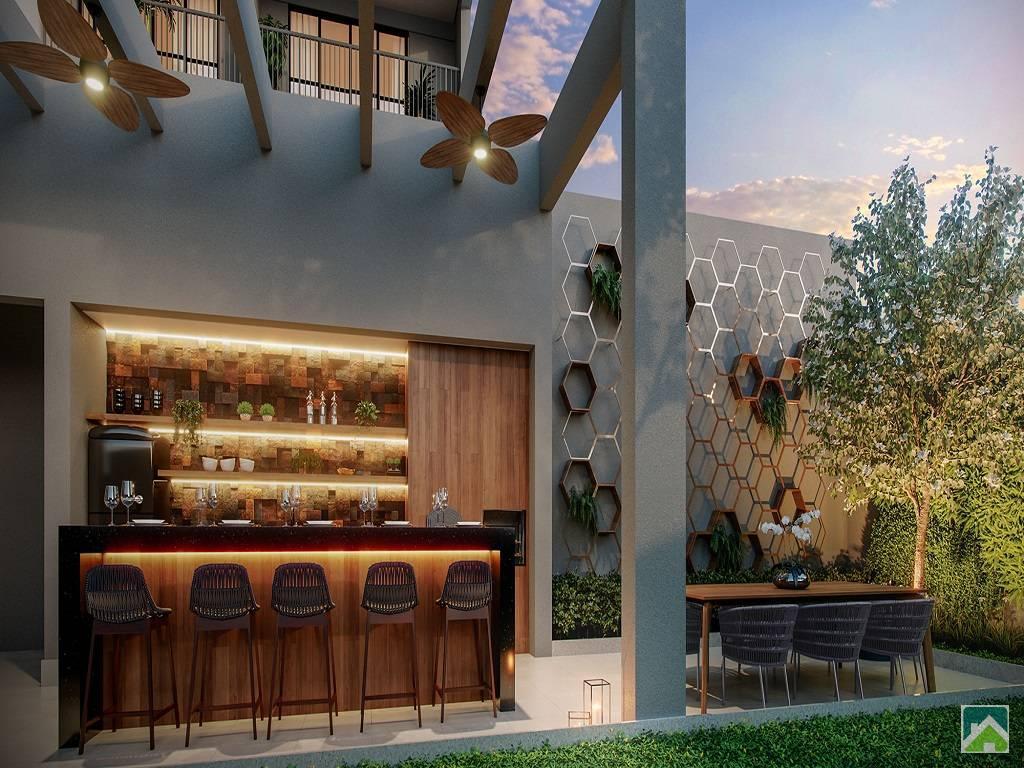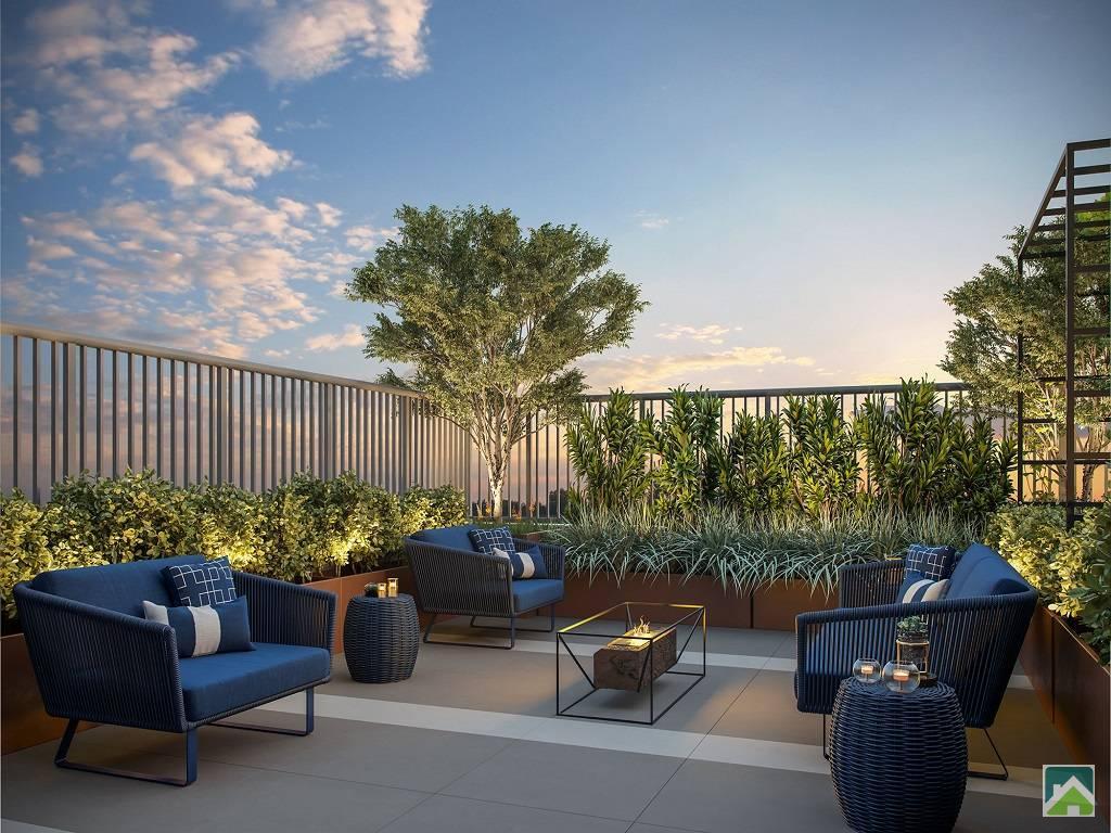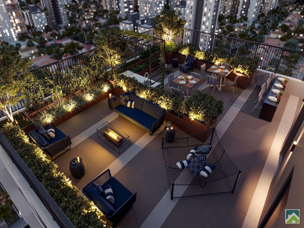 Áreas de Lazer: Sauna seca com lounge para descanso, Espaço gourmet externo, Fitness externo, Pet place, Piscina adulto com área de solarium e deck molhado, Salão de festas, Home cinema e Fitness, Lounge com mirante, Churrasqueira com forno de pizza, Praça do fogo, Horta e pomar comunitários.