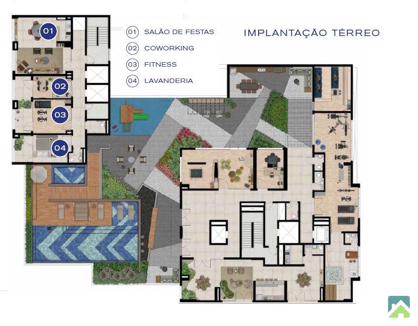 Lobby com pé-direito duplo, Espaço delivery para receber as encomendas com segurança, Portaria com vidros blindados, Gerador de emergência, Lâmpadas de LED em todas as áreas comuns, Ar-condicionado e Wi-Fi nas áreas comuns sociais, Acessos social e de serviço independentes, Paisagismo diferenciado, Bicicletário com tomada para bike elétrica, Previsão de ponto de recarga para veículo elétrico.
