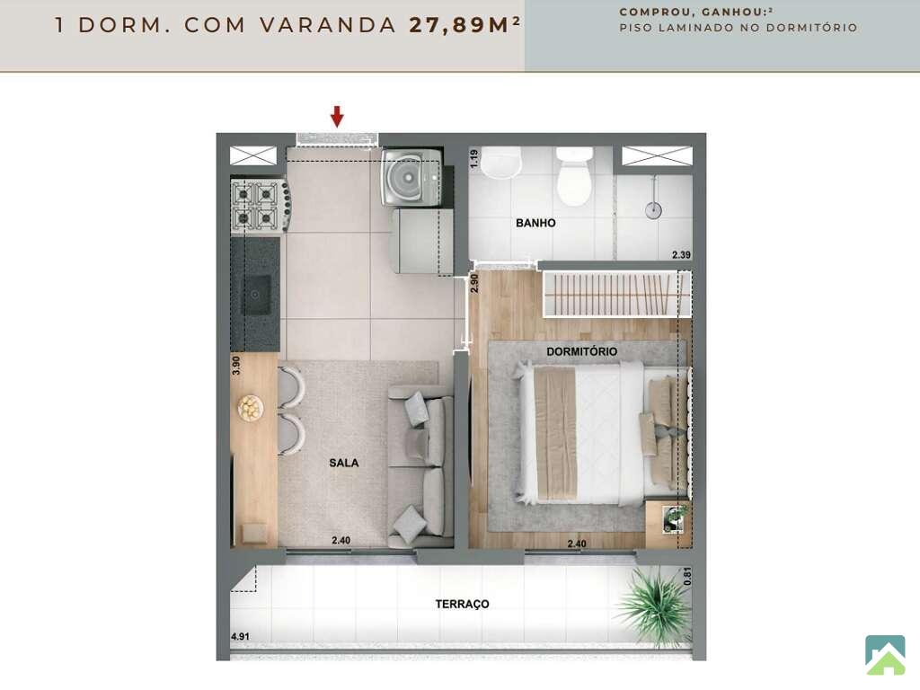 Apartamento de 2 dormitórios, com terraço, 44m².